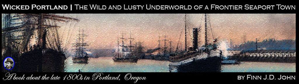 Wicked Portland Amazon page Wicked Portland Amazon page Read Facebook page View Twitter feed Wicked Portland Amazon page Introduction: About the book and how to use it Chapter One: A wide-open frontier city Chapter Two: Portland's municipal rascal Chapter 3: Portland's saloons and gambling dens Chapter 4: North End Girls Chapter 5: America's worst shanghaiing city Chapter 6: Fixing the police Chapter 7: Mayors behaving badly Chapter 8: World's dumbest drug smugglers Chapter 9: Wicked politics Chapter 10: The end of the golden age About the author Switch to mobile-device version of this page Switch to mobile-device version of this page Go to home page The Lost Chapter By Finn J.D. John